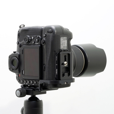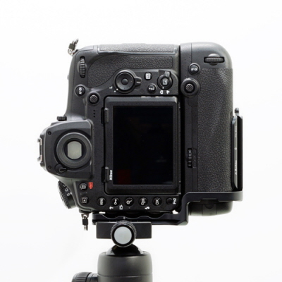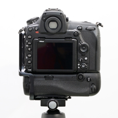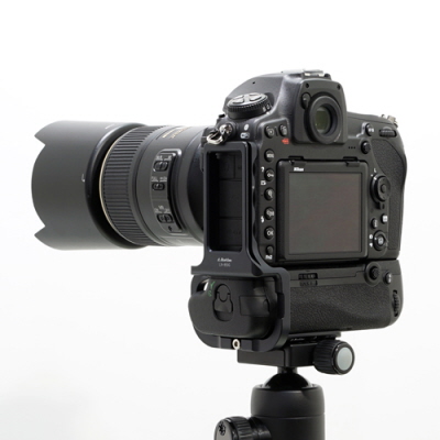 Das L-Bracket zur Nikon D850 mit Batteriegriff ist sehr leicht und äusserst präzise aus leichtem Aluminium gefertigt. Die L-Schiene liegt sehr nahe an der Kamera an und ermöglicht den Zugang zu sämtlichen Anschlüssen an der Kamera.